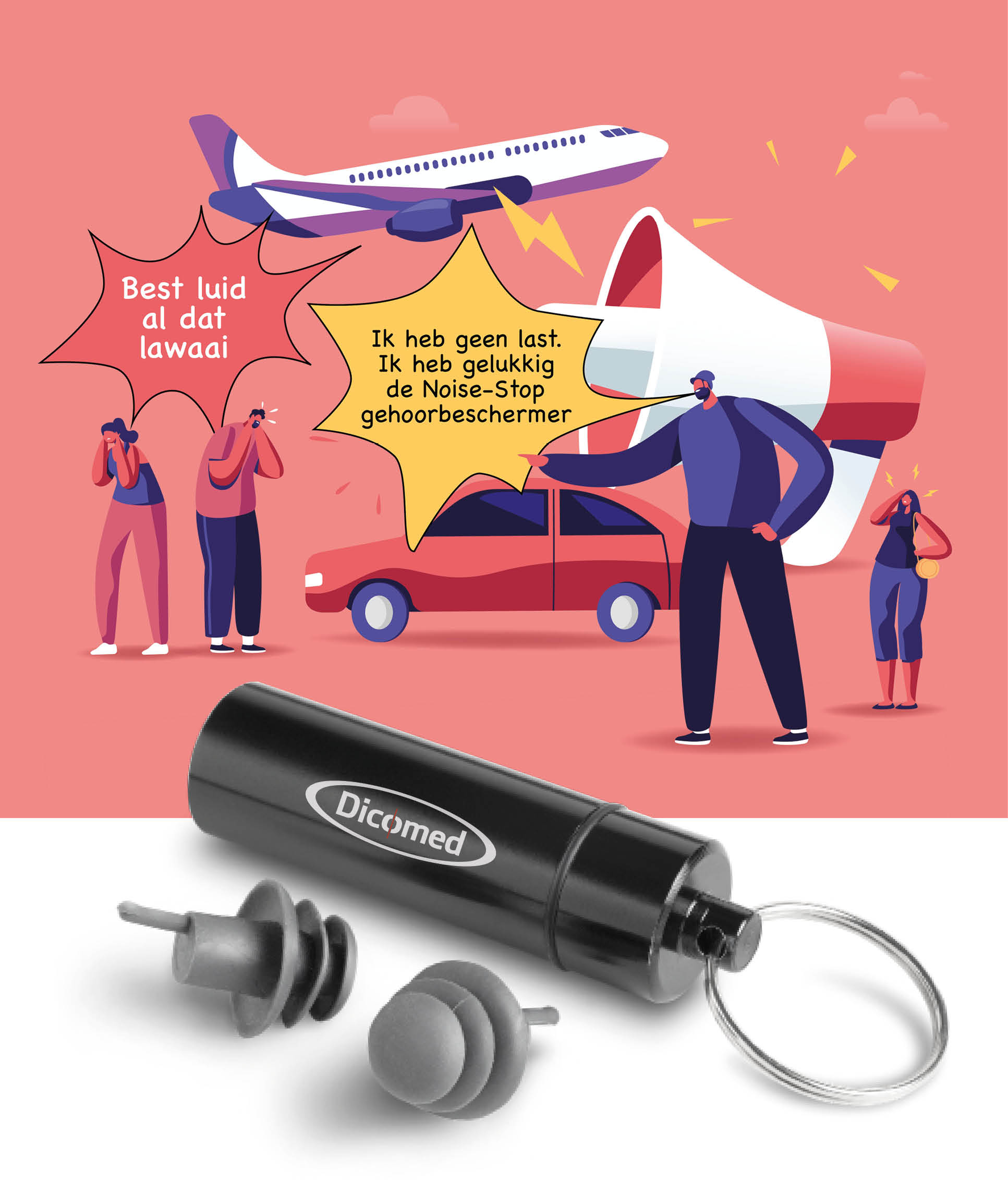 Je kunt niet zonder Noise-Stop… Houd ze altijd bij je in het kokertje aan je sleutelring, in je tas, broekzak of jaszak. Het maakt niet uit, zolang je ze maar binnen handbereik hebt voor die momenten waarop het geluidsniveau de pan uitrijst! Met een simpele beweging plaats je de Noise-Stop doppen in je oren en voilà, je bent beschermd!
